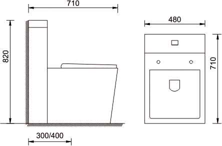 S-trap; P-trap, back to wall: 300/400mm