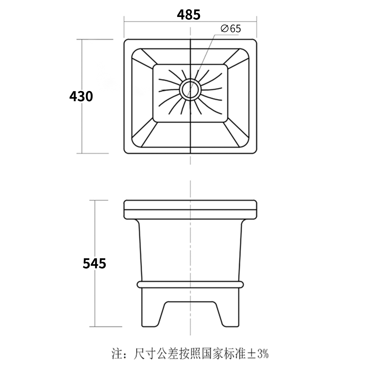 外径:430长*485宽*545高mm