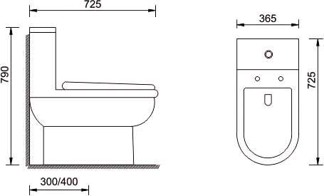 S-trap; P-trap, back to wall: 300/400mm