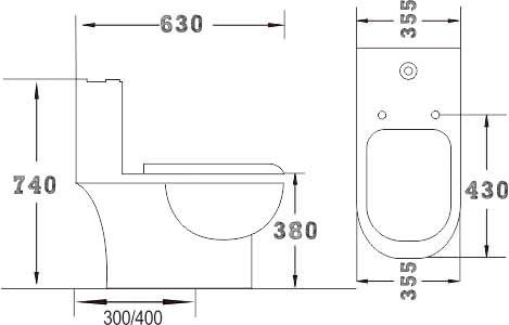 S-trap; P-trap, back to wall: 300/400mm
