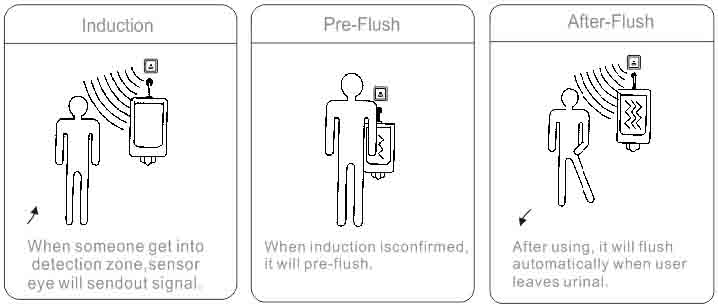 Flush Automatically: After being used, the urinal will flush automatically by the sensor flusher.