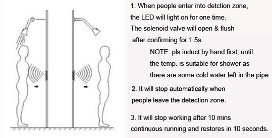 obstacle or the people leave detection zone for 10s. This function can effective to avoid water waste caused by mislead.