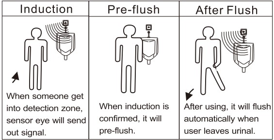 Flush Automatically: After being used, the urinal will flush automatically by the sensor flusher.