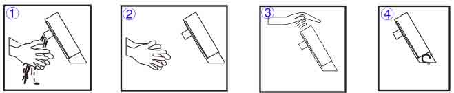 ③Water will flow on with activating the sensor(facing up); water stop automatically at the 2nd activate( facing up)