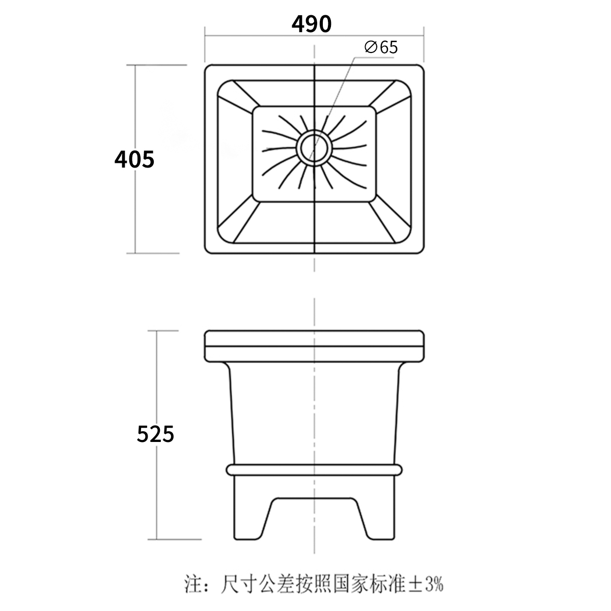 外径:405长*490宽*525高mm